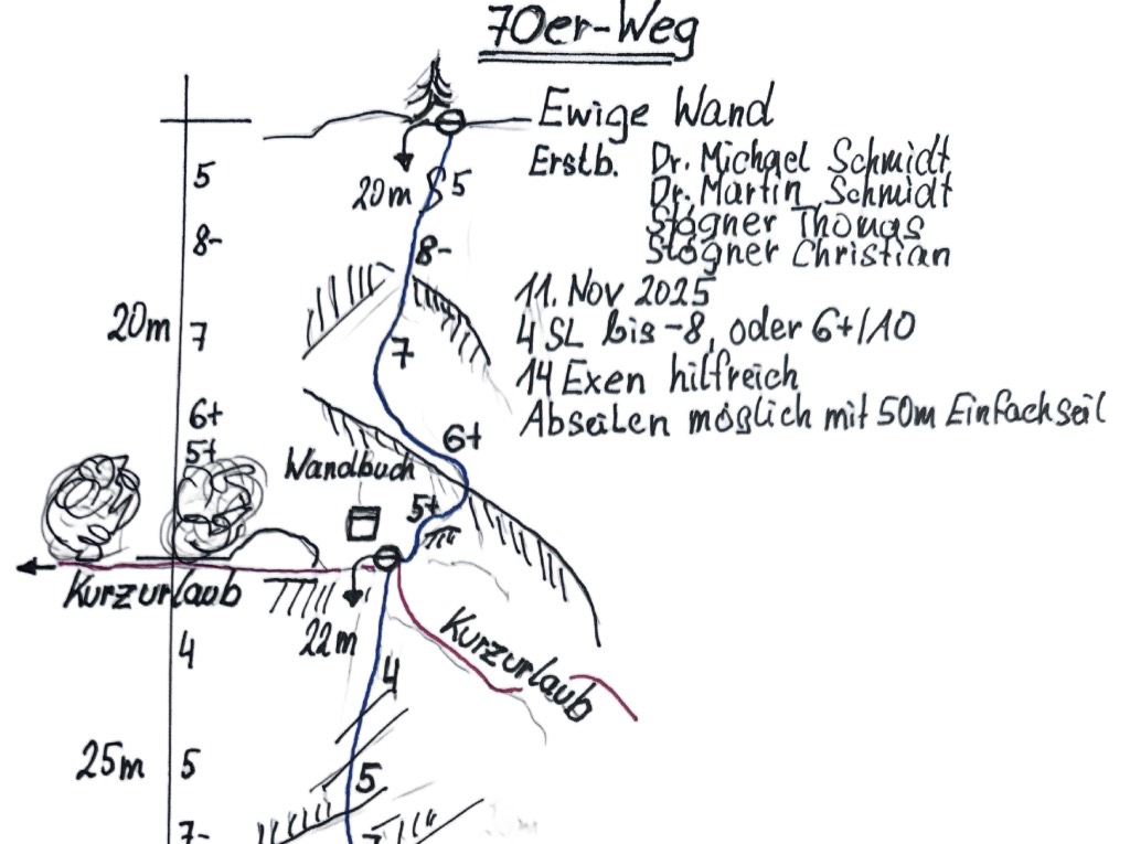 Unser Weihnachtsgeschenk an euch ist eine neue Kletterroute von Christian Stögner in der Ewigen Wand. » Topo (PDF) Viel Spass beim Klettern und vielleicht gibts danach eine Stärkung bei uns in der Rathlucken Hütte?